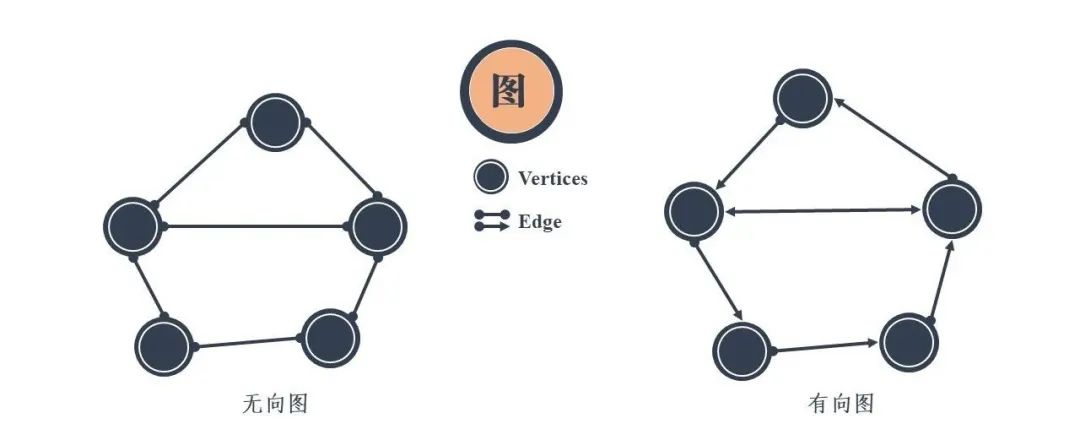 图结构一般包括顶点和边,顶点通常用圆圈来表示,边就是这些圆圈之间的连线。边还可以根据顶点之间的关系设置不同的权重,默认权重相同皆为1。此外根据边的方向性,还可将图分为有向图和无向图。