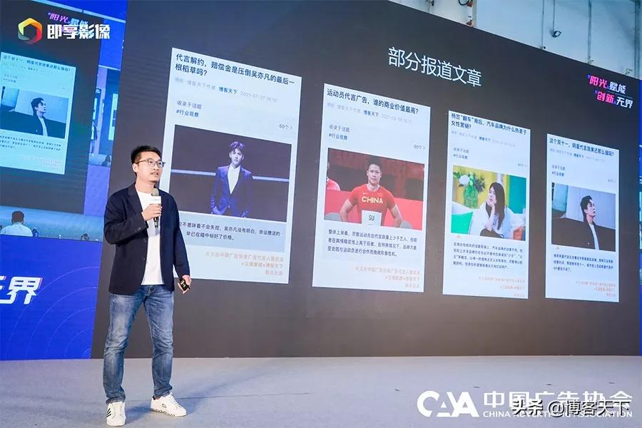 大会上,《博客天下》执行主编陈鹏就《广告代言行为准则》中媒体传播的责任和意义发表了自己的看法,并表示将继续与中国广告代言人委员会、爱漫数据合作,做好广告代言深度报道,致力于打造广告代言公告平台,讲好中国品牌故事,助力推动广告业健康发展。