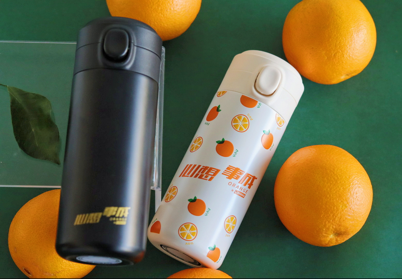 玻璃上的一切都变成了保温杯,寓意满满的思念“橙”,超轻保温杯,316医用手术刀不锈钢,健康安全。