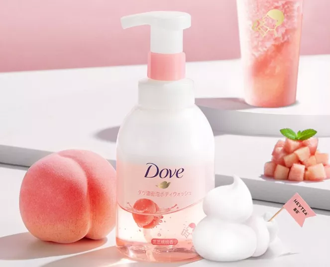 多芬和喜茶合作推出了一款沐浴露,有知止桃子的味道。在好奇心的驱使下,三人甚至买了一套回家。