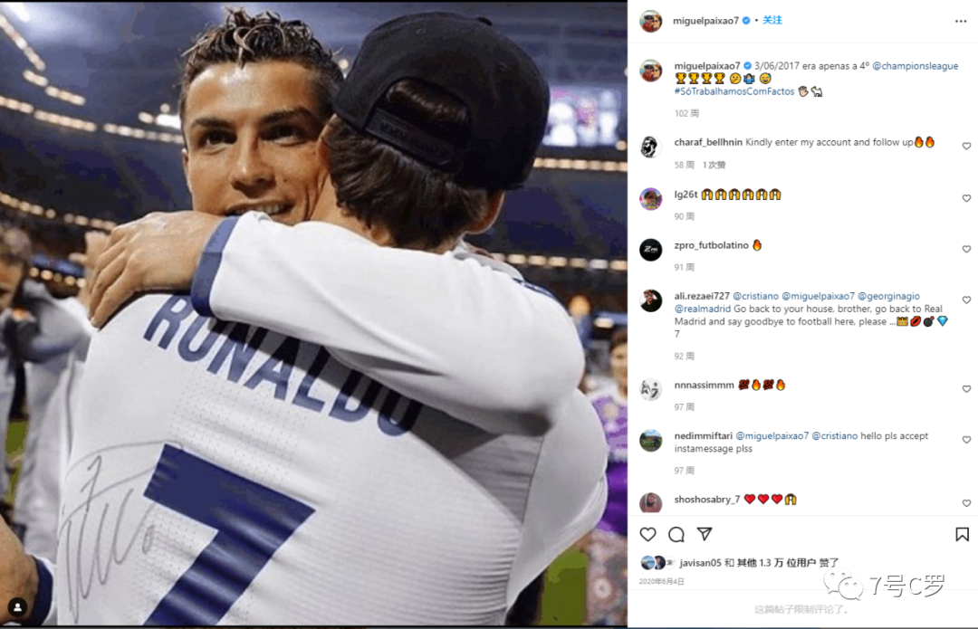 回到这篇由c罗最好的朋友米格尔发表的ins帖子