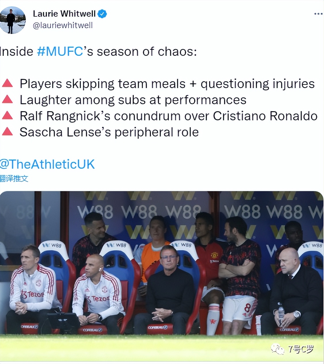 然后就是球队更衣室的问题。劳里惠特威尔补充道,队内两名资深球员训练态度差异很大!