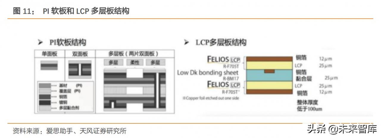 LCP天线(高频柔性板)持续渗透,打开FPC市场空间:LCP天线是以LCP为基材的FPC电路板。LCP材料具有低介电常数和低介电损耗的特点,因此更适合高频信号传输。由于上游材料、薄膜和FCCL供应商的短缺,LCP天线价格昂贵。