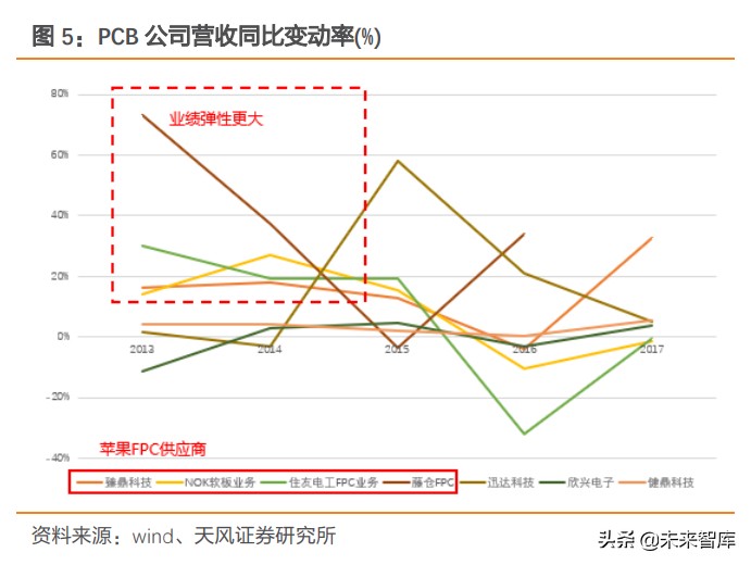 苹果的创新迭代引领FPC产业发展。苹果作为当之无愧的手机技术领导者,其巨大的订单需求和对其他品牌的示范效应带动了PCB行业的发展。