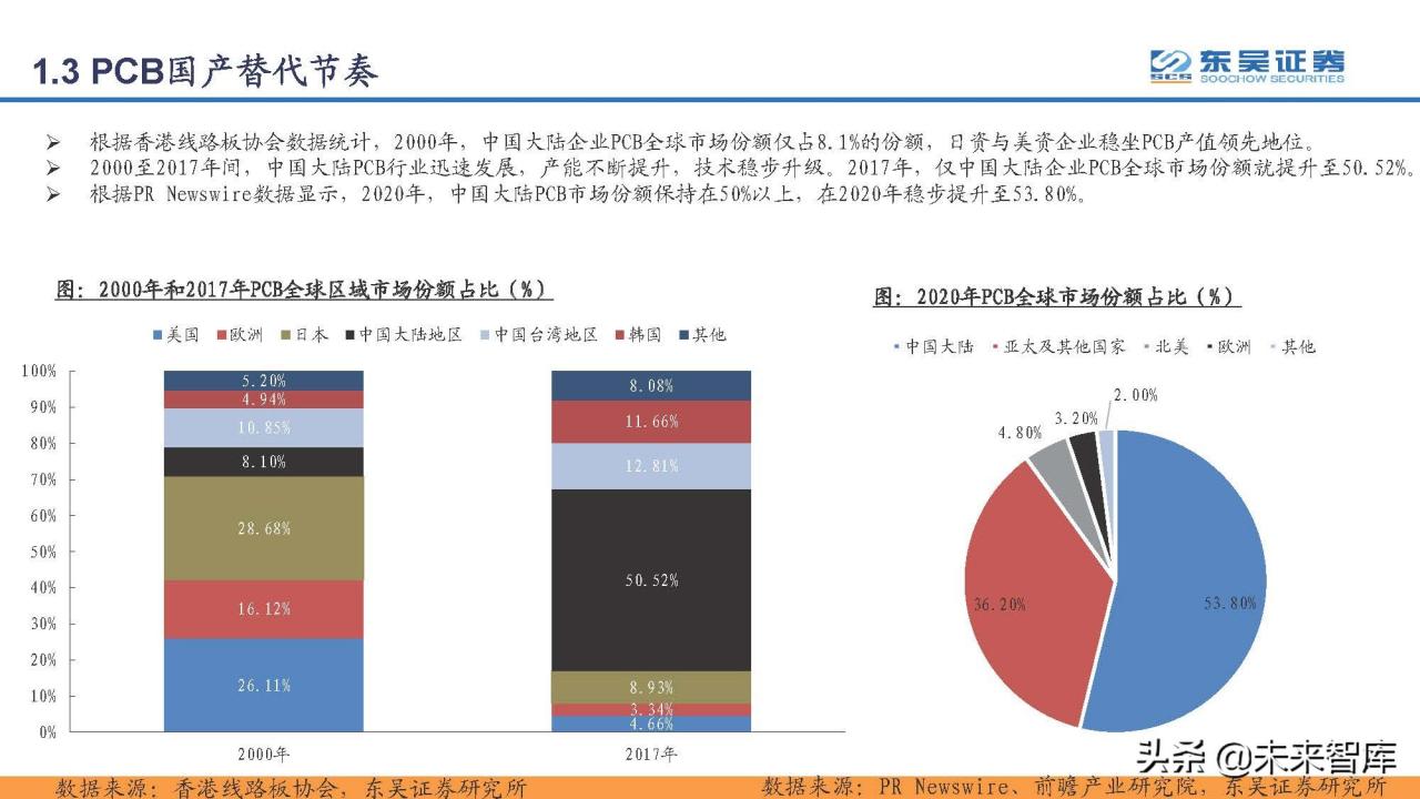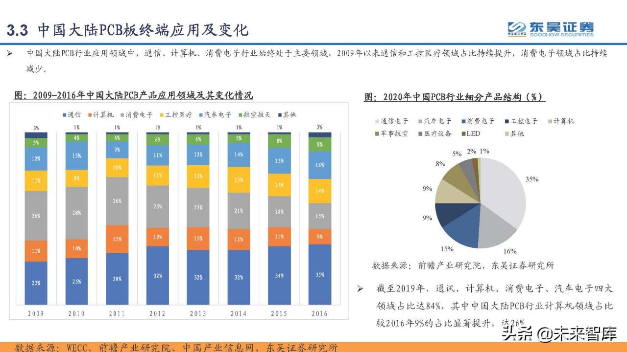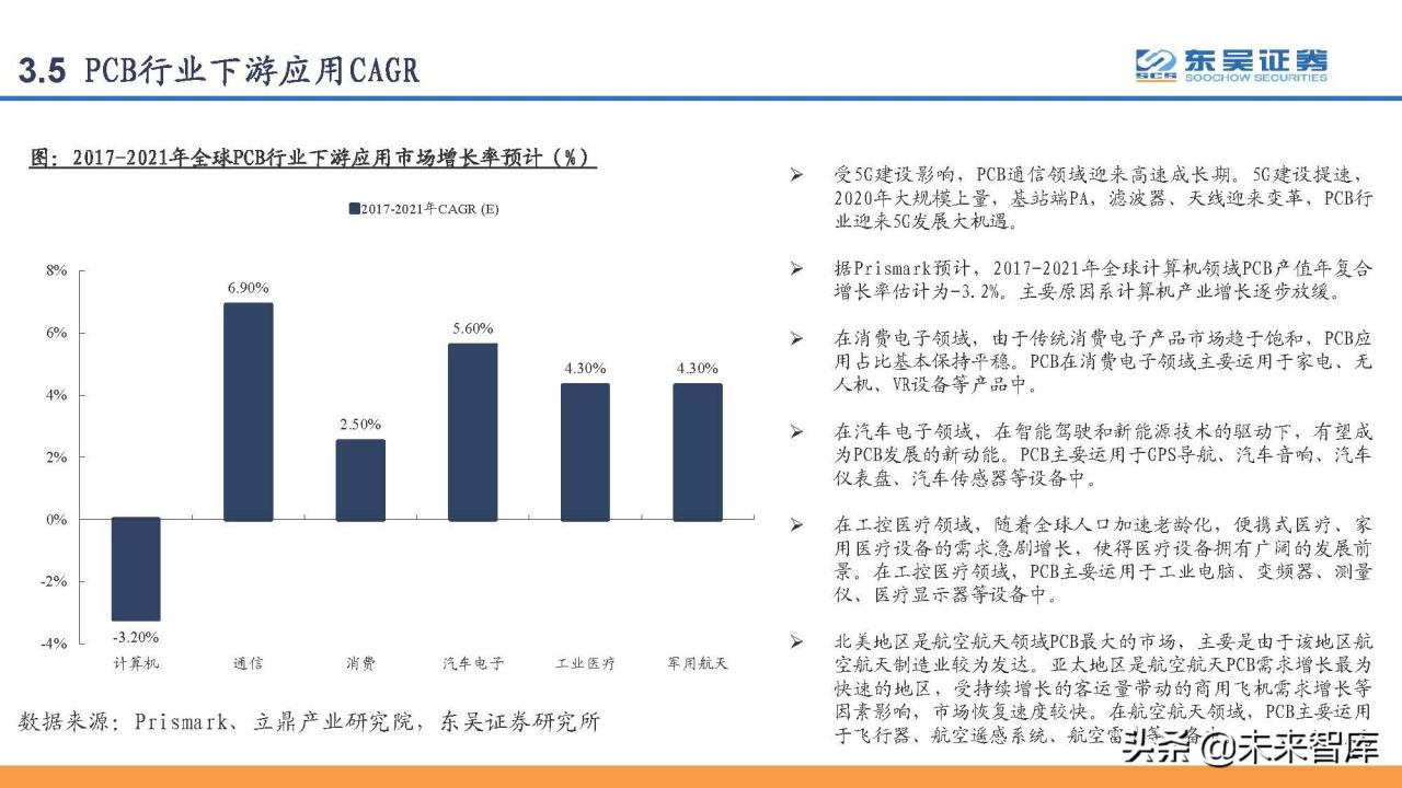 到目前为止,PCB行业的应用领域几乎涉及所有的电子产品,主要包括通信、航空航天、工业控制和医疗、消费电子、汽车电子等行业。