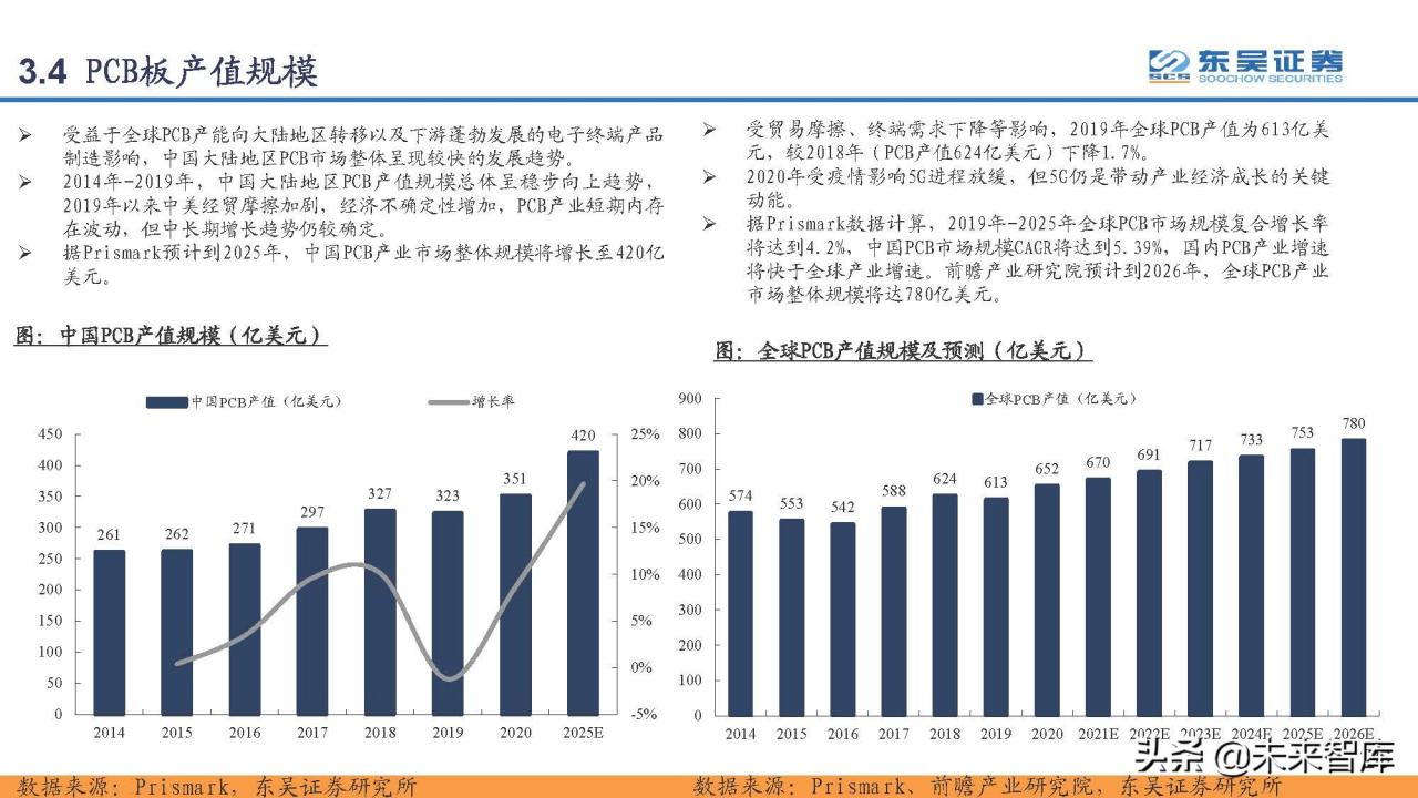 受益于全球PCB产能向mainland China的转移以及下游电子终端产品制造业的蓬勃发展,中国大陆PCB市场整体呈现快速发展态势。2014年至2019年,中国大陆PCB产值总体呈稳步上升趋势。2019年以来,中美经贸摩擦加剧,经济不确定性增加,PCB行业短期有波动,但中长期增长趋势还是比较确定的。根据Prismark的预测,到2025年,中国PCB行业市场的整体规模将增长到420亿美元。