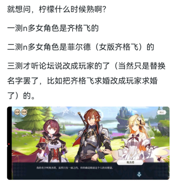 养老婆?然后又被喷爆,最后现在直接改回了一测的剧情,但是非常聪明的把在一测中玩家帮着追妹子的男人“齐格飞”的名字简单的替换成了玩家自己的名字。