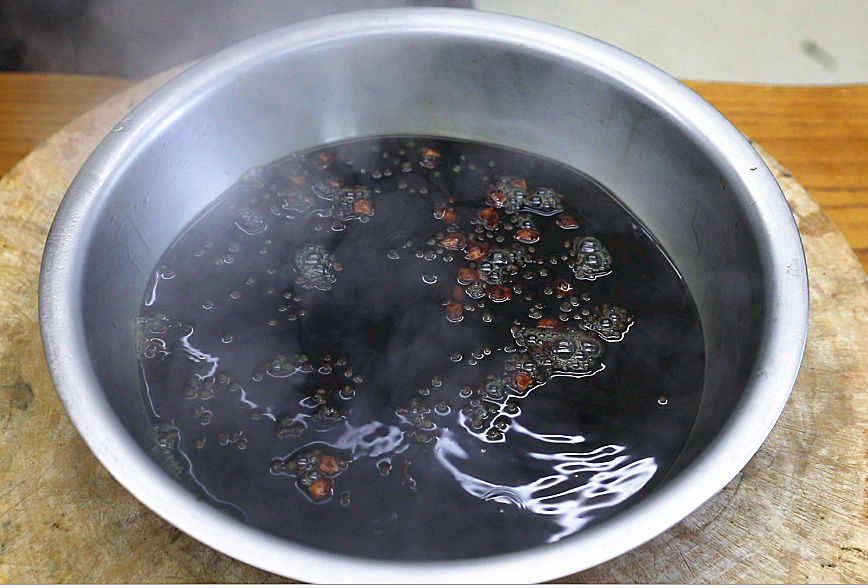 2.把锅烧热,放入一小撮青麻椒,几个八角掰散,开小火煸炒出香味,然后倒入500克陈醋,500克生抽,抓入两把冰糖,糖的量自由掌握,喜欢甜口的,就多放一些,开大火把冰糖熬化,然后转小火继续熬五分钟,把酱料的香味熬出来,熬好以后倒在无水无油的容器里,晾凉备用。