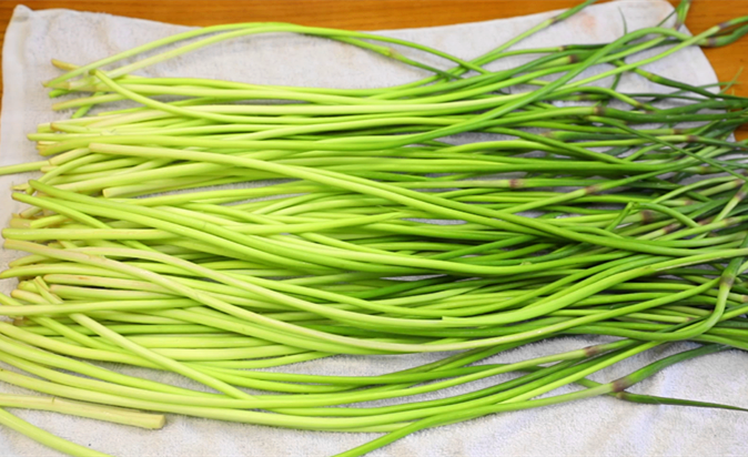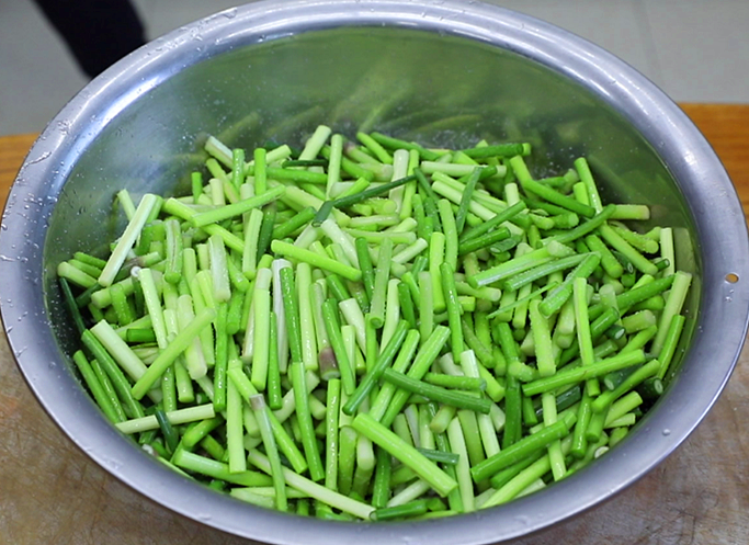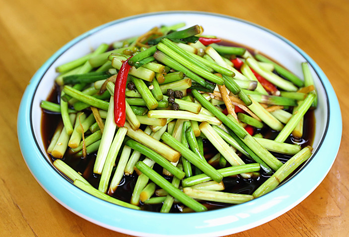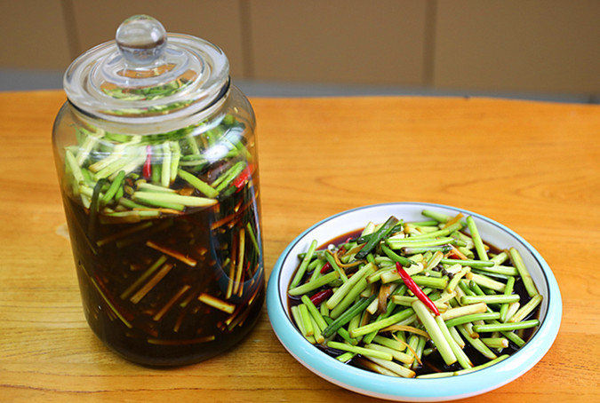 5.好了,清脆爽口的腌蒜苔就做好了。