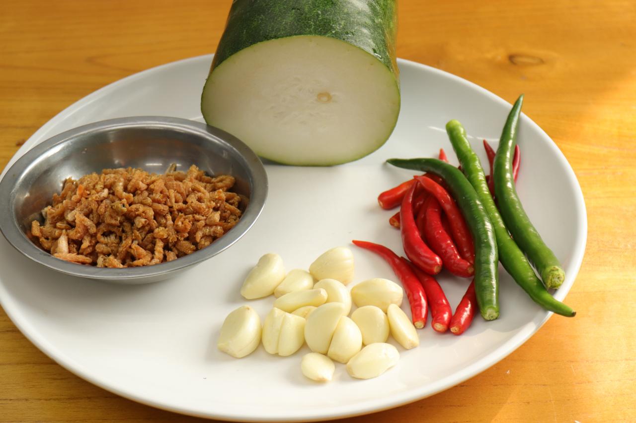 1.冬瓜去皮、去瓤、切成片,小米椒切成圈,青线椒也切成圈,再准备一把大蒜,先切碎,再剁成蒜末,然后把泡好的海米,控干水分备用。