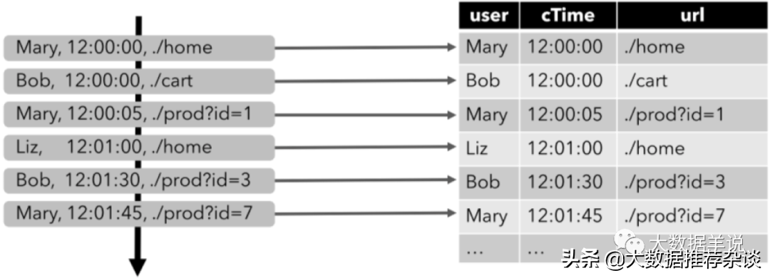 [ user: VARCHAR, // 用户名 cTime: TIMESTAMP, // 访问 URL 的时间 url: VARCHAR // 用户访问的 URL]