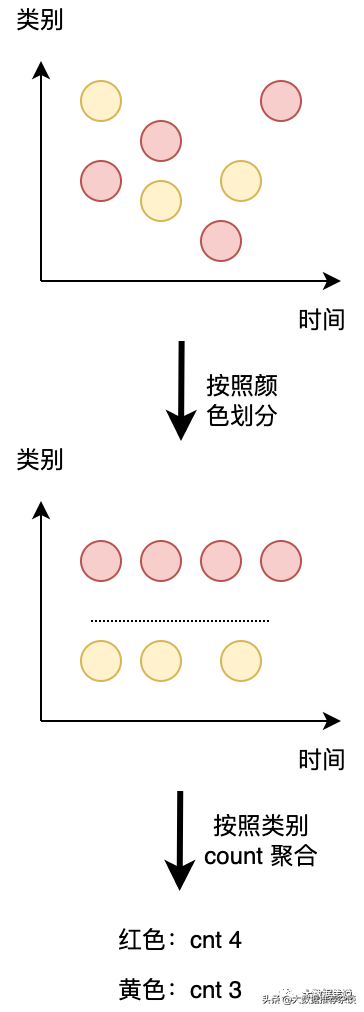 图形化一解释就很好理解了,两种都是对数据进行分组,一个是按照 类别 分组,另一种是按照 时间 分组。