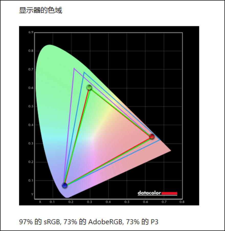 Redmi Book Pro 15 2022锐龙版测评:锐龙7 6800H加持,体验出彩的大屏轻薄猛机屏幕实测色域覆盖率为97%sRGB。色标方面,Delta E最大值5.94,最小值0.04,平均值0.55,可用于后期摄影等调色用途。实测屏幕最大亮度约为440尼特,在同价位轻薄本中算是比较高的了。