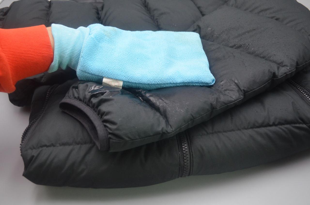 第四步:准备一块抹布,用清水洗净拧成半干状态擦拭羽绒服。这样可以去除羽绒服上留下的污渍和白醋的味道等。学会这一招,洗出来的衣服比洗衣房还干净,解决了很多家庭的烦恼。
