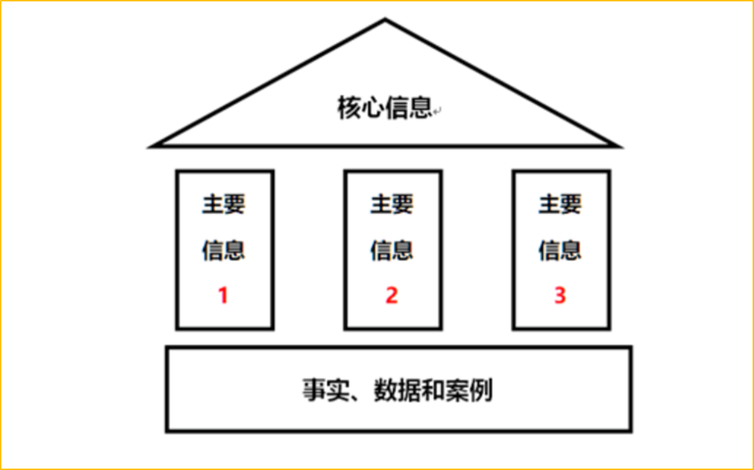表达时,先提屋顶(即核心信息),再说三栏,必要时最后列举案例。