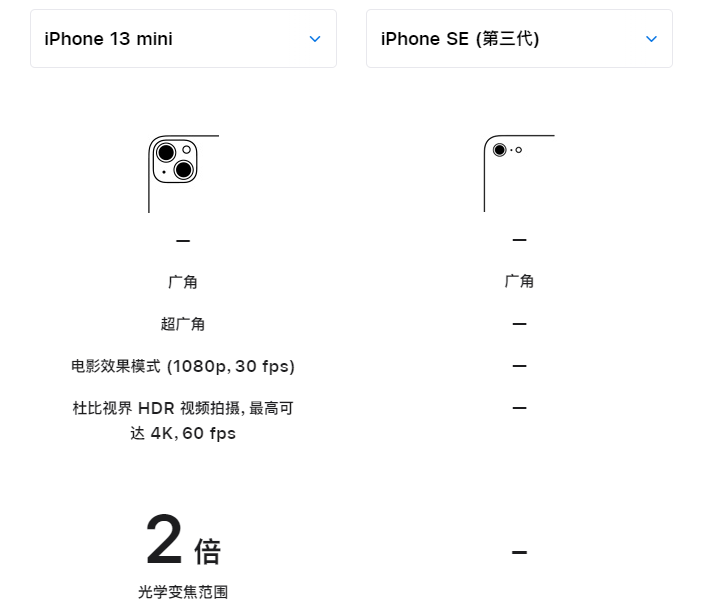 首先, iPhone 13 mini 是去年秋天发布的机型,采用超视网膜 XDR 显示屏,后置有两枚摄像头,一颗广角、一颗超广角,所以它在拍摄方面比 iPhone SE3 更加优秀。