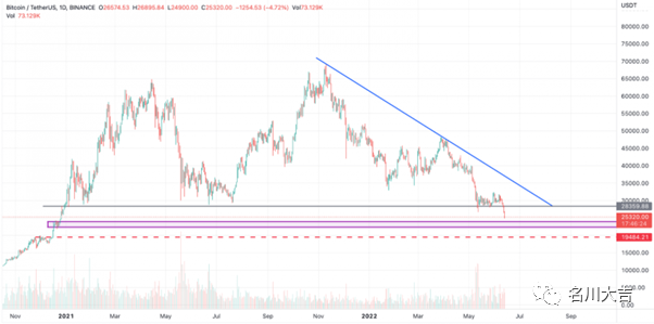 价格已经跌至临界水平,20000美元上方的最后一个支撑位在22500-23800美元之间。为了保持价格在20,000美元以上,价格必须在这些区域盘整或避免跌破它们。