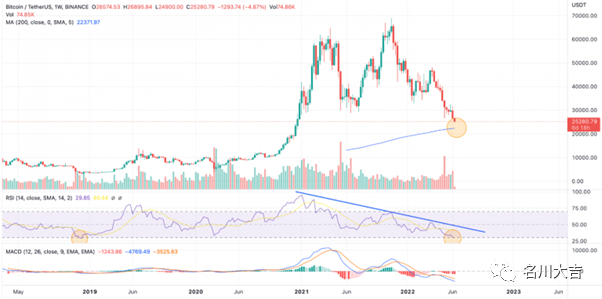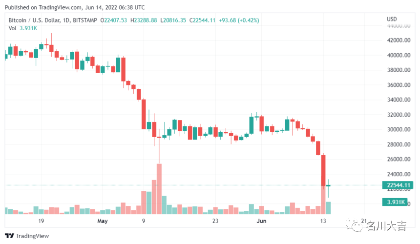 熊市趋势始于上周末。目前,BTC的售价不到23000美元。这是18个月以来BTC首次经历类似的价格下跌。