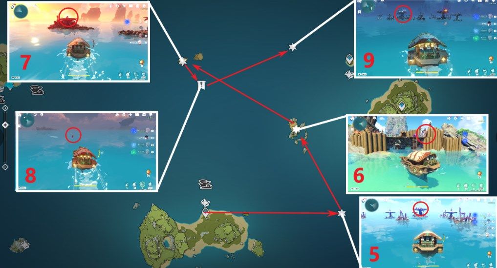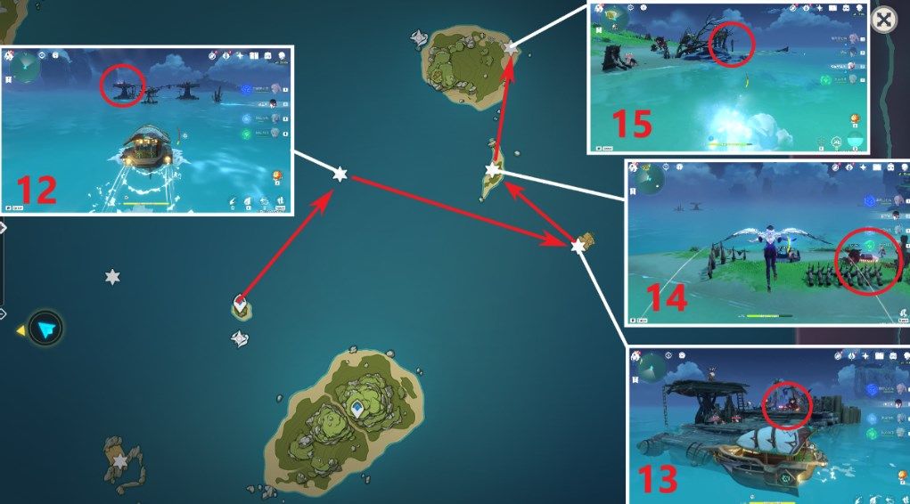 (16)从地图西北方的岛屿出发,向南前往海上营地