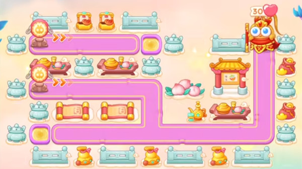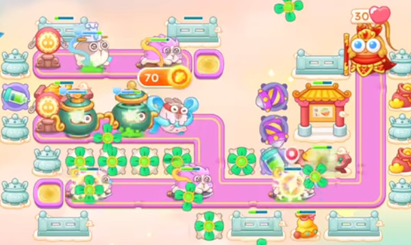 3.有钱就把风扇塔升到3级。在打掉障碍的位置再加一个风扇塔,一起锁住左边角落的卷轴障碍。