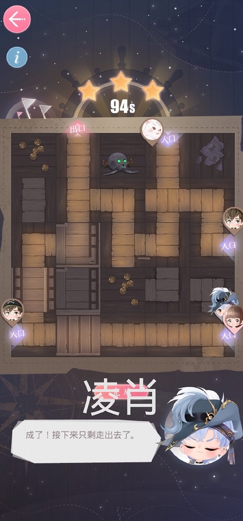 6.按照上面的迷宫旋转,让雌雄从入口到出口通关。