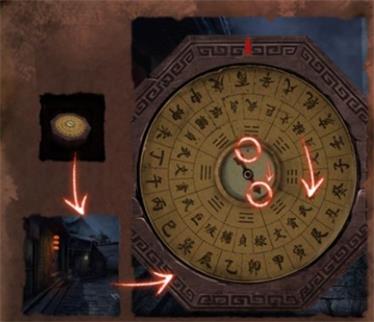 6.旋转指针,使指针对准红点,得到文字和八卦线索。