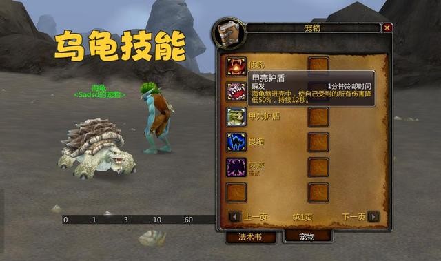 第一个是乌龟,这款宠物自带一个名为甲壳护盾的技能,效果是降低50%受到的伤害;
