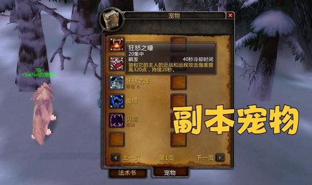 狼类宠物自带一个名为狂怒之嚎的技能,效果是提升320点攻强,CD40秒,持续20秒,相当于常驻160点攻强了。这款宠物也是资料片巫妖王之怒版本猎人的最优解。