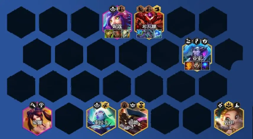 影龙训练法得分也比较稳定,但是现在阵容上限略低。如果Ruiz能打3星,上限就很高了,但是难度很大。如果这个阵容和三大阶段不一样的话,可以更适合改九五(两改)。肉衣会给日光,法强装备给龙女,萨芬装备给亚索,实力会大大提升。