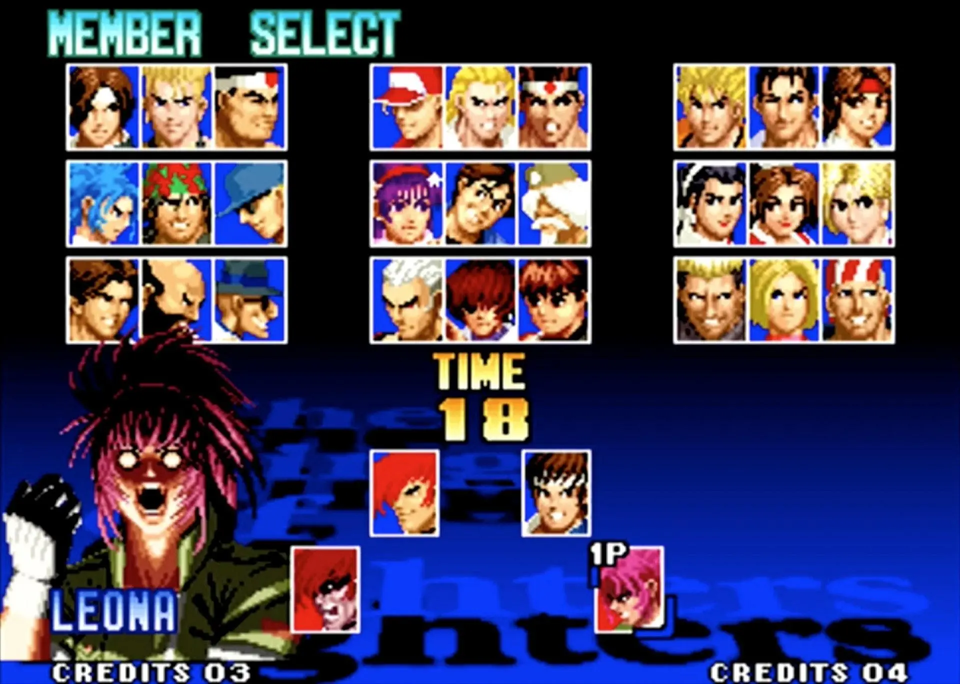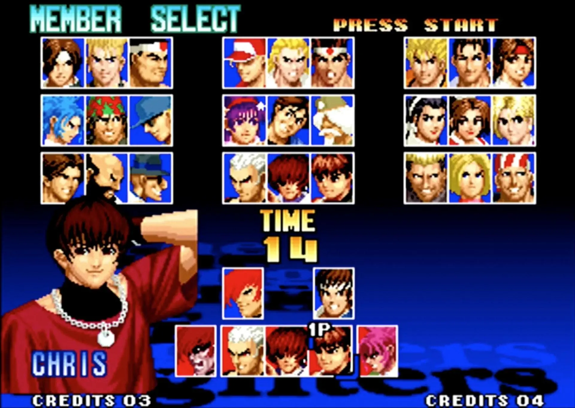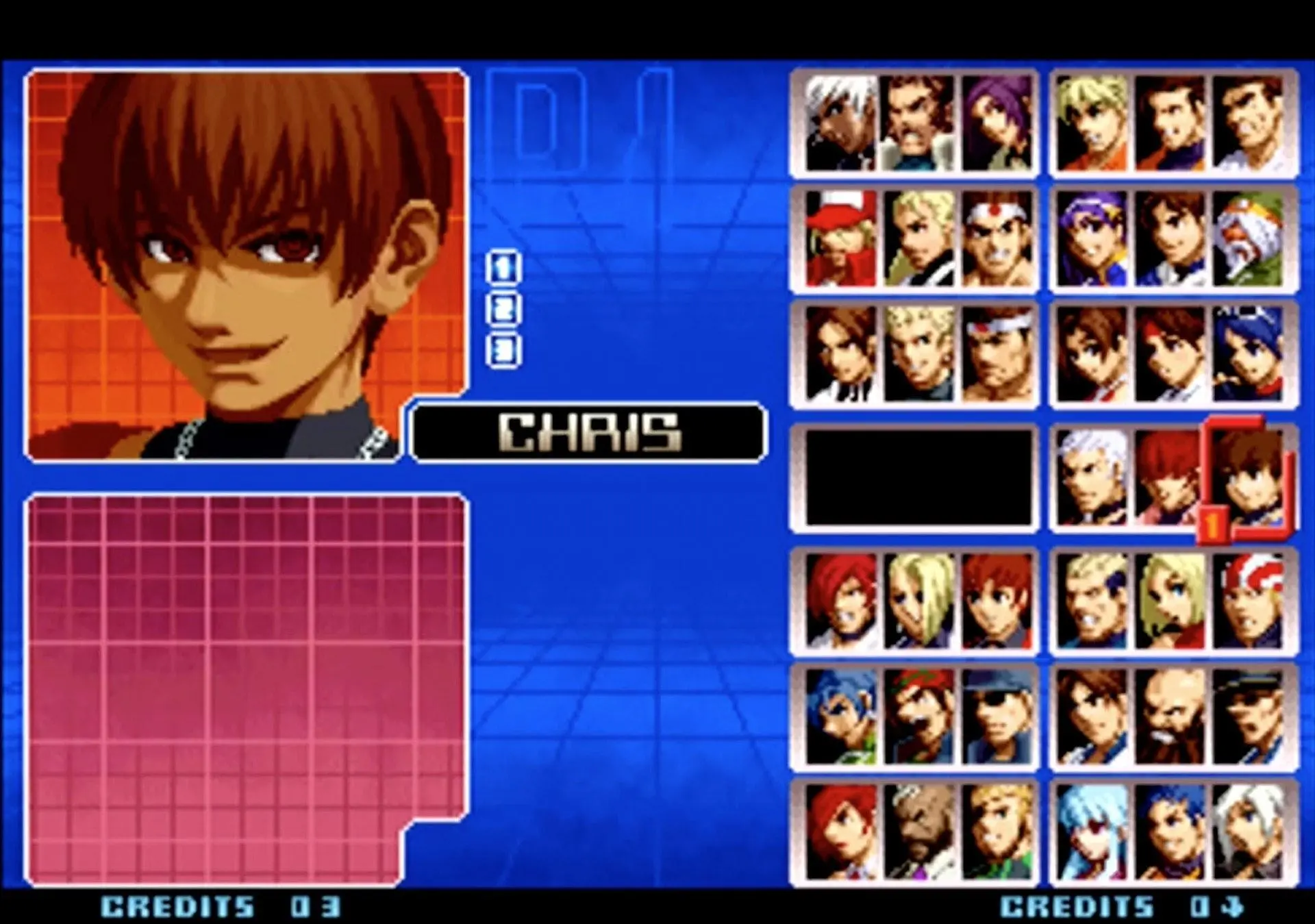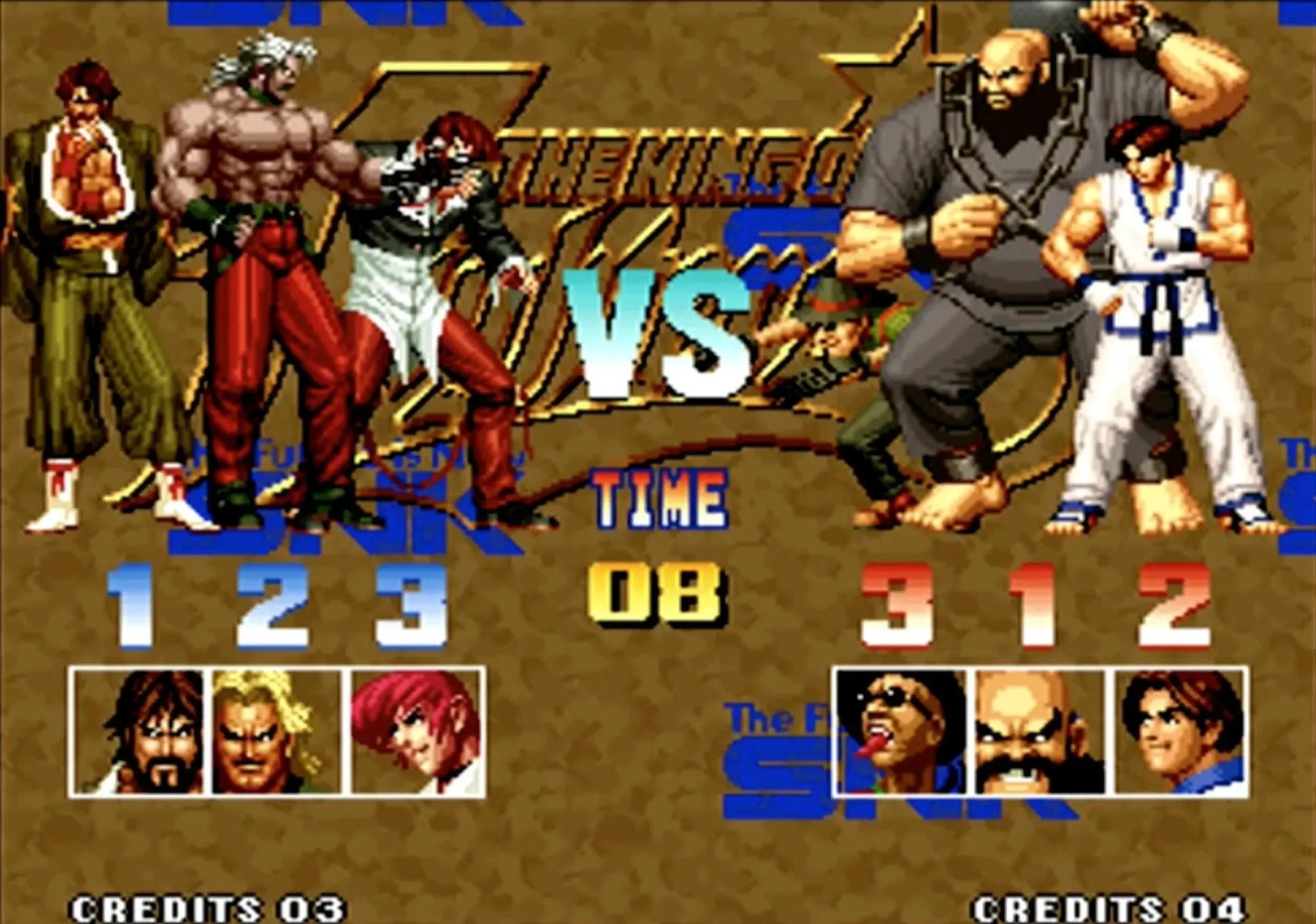 拳皇 KOF 2002(大蛇队):大蛇队则更简单,只需要在相应角色上按着Start选人便可。