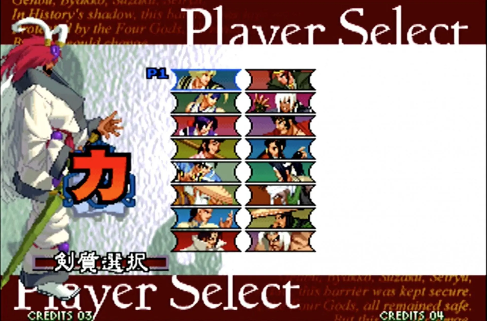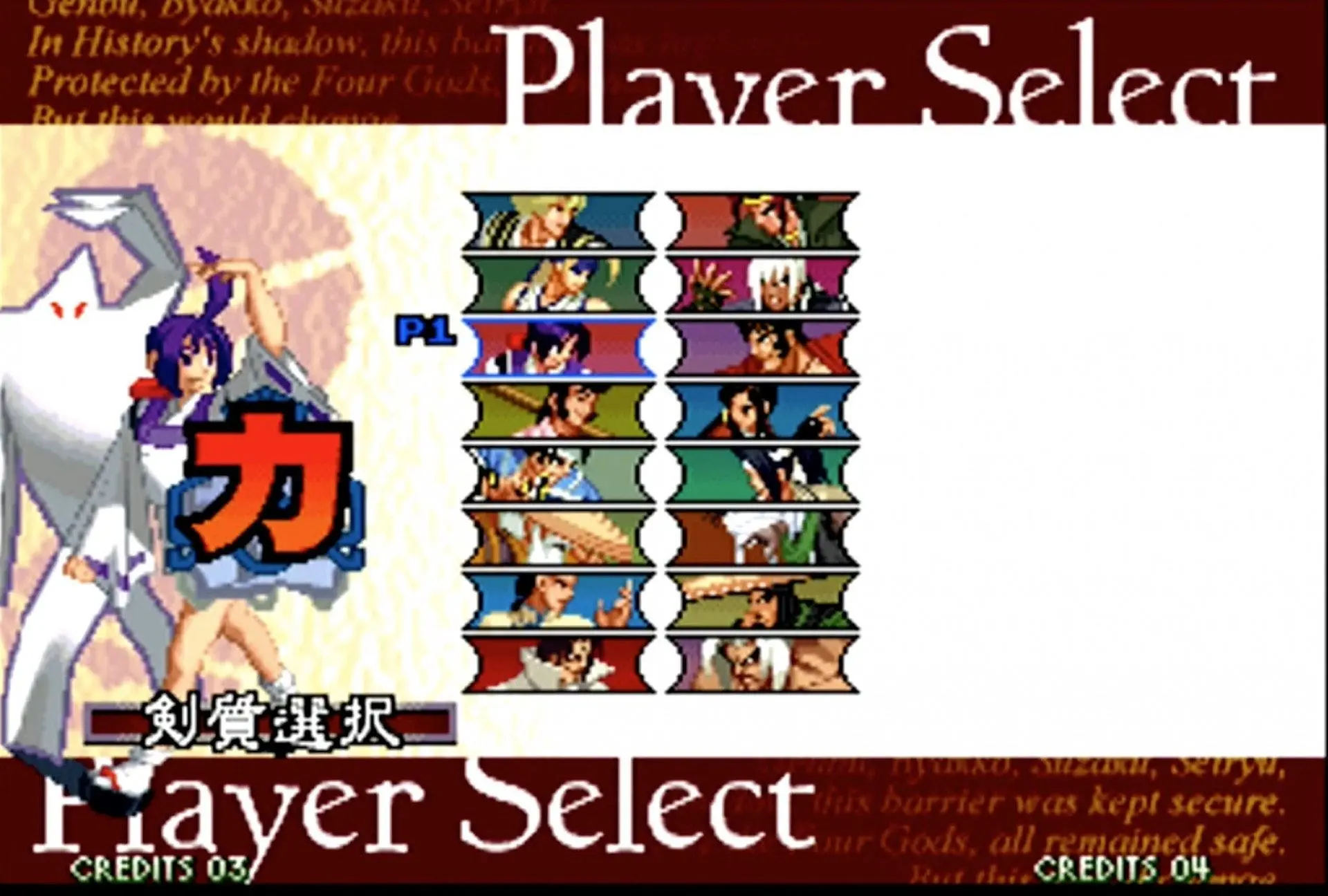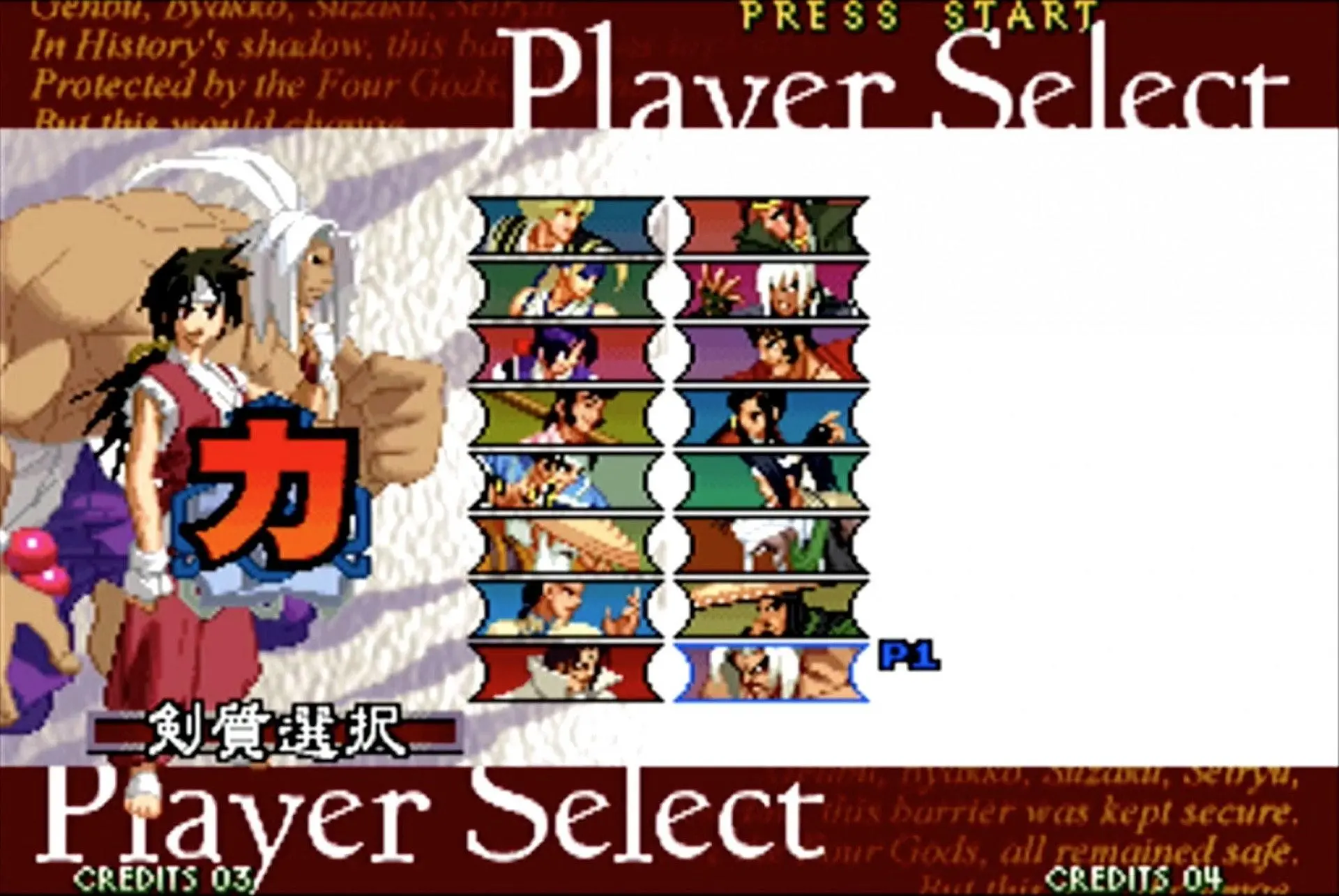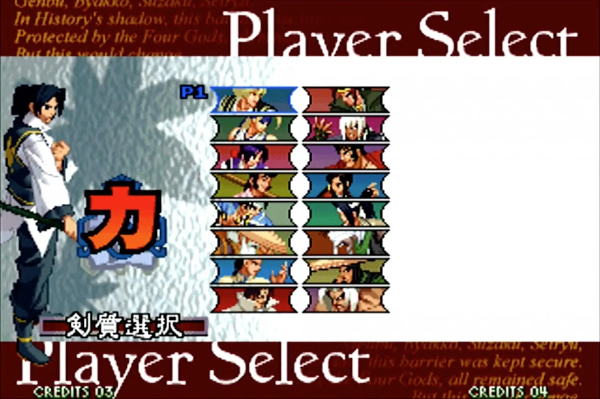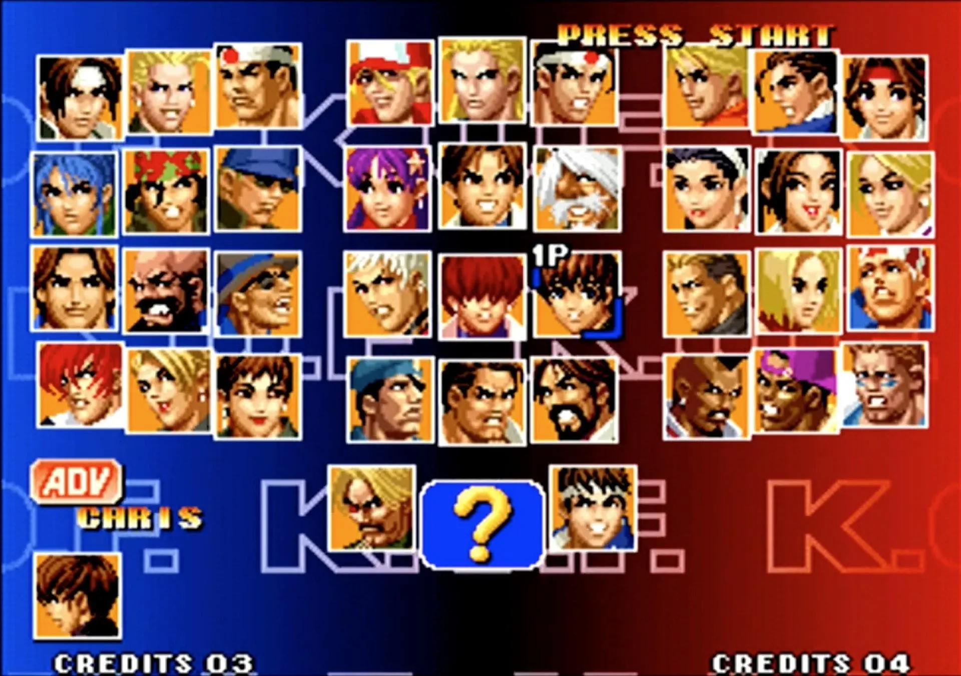 拳皇 KOF 2002(大蛇队):大蛇队则更简单,只需要在相应角色上按着Start选人便可。
