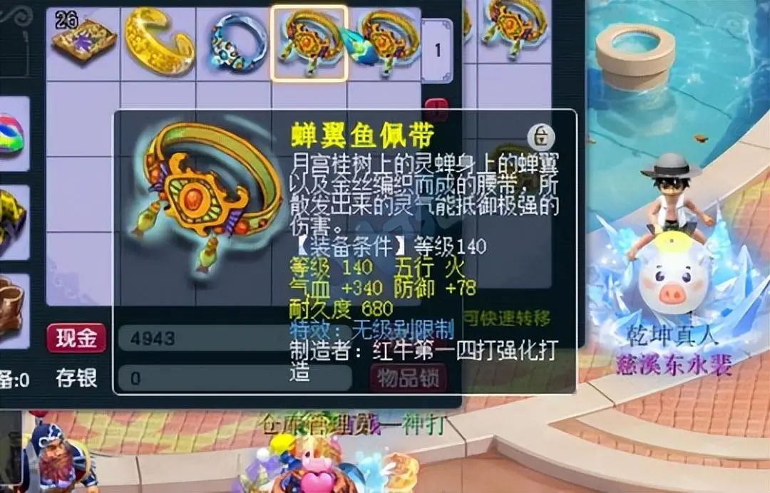 鉴出的第二条140级无级别腰带则是国标属性,无独有偶的是两件无级别的打造者是同一个人。它们都能开五孔,不仅可以增加大量的属性,还可以提升六级的门派技能,所有X9门派都用得上。