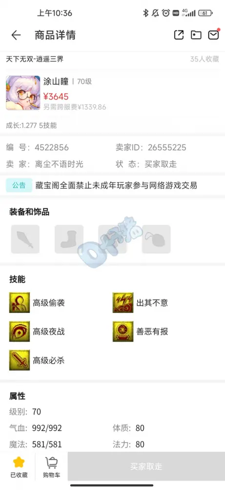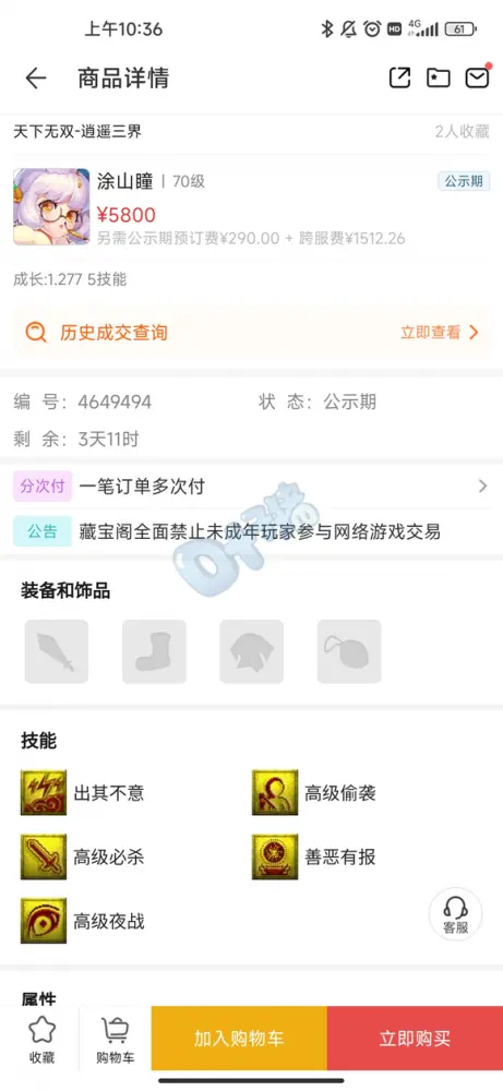 一位玩家在近日发现收藏已久的双特殊涂山瞳以3600元成功交易,在高必、高偷以及出其的加持下,善恶的输出值上限极为恐怖,非常适合捉鬼任务。