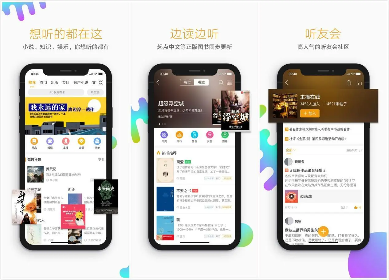 荔枝FM,这个听书APP有一个很特别的地方,那就是它的互动性很强,支持听众和主播进行在线互动,另外它还提供了定时功能,这个功能真的很贴心,有了这个功能,再也不用担心自己睡着之后,手机还在不停的播放。