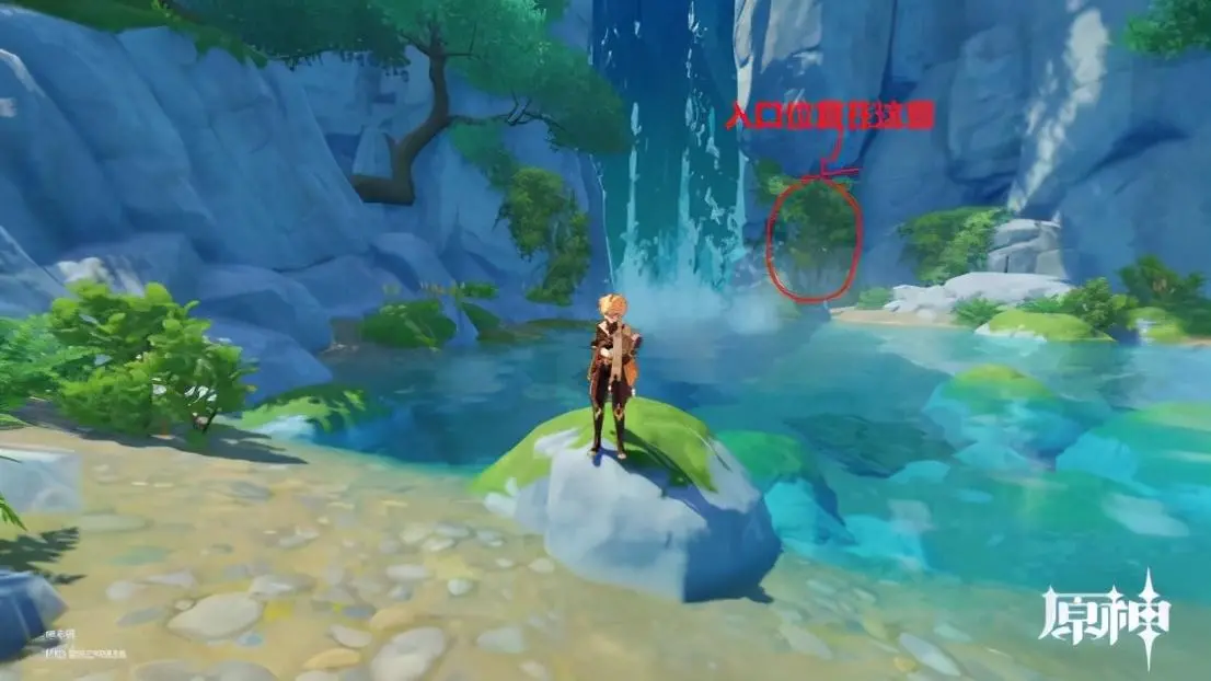 按照顺序打开后,咱们就可以拿到第三封印啦!打开宝箱拿到奖励后咱们按原路回到轻策村村长那里交任务,村长继续指路封印开启的地方,沿着后山旁边找一圈就能找到这个瀑布。悄悄告诉你们,旁边还有另一个岩神瞳碎片在山洞里噢,需要切矮个子角色走进去拿。