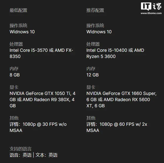 IT之家了解到,根据 Epic 商城页面公布的配置要求: