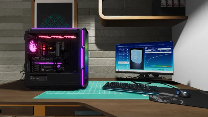 以真实的硬件与软件模拟,进一步进行装机流程。使用风扇控制应用以及感温摄像头来优化电脑的冷却系统,使用电力侦测器来追踪耗电情况,并为你的 GPU,CPU,RAM 以及主板追加定制水冷部件。