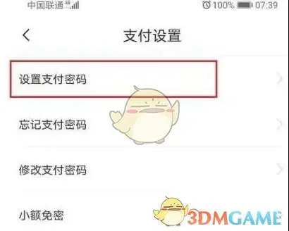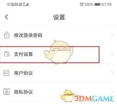 2、选择中的支付设置选项。