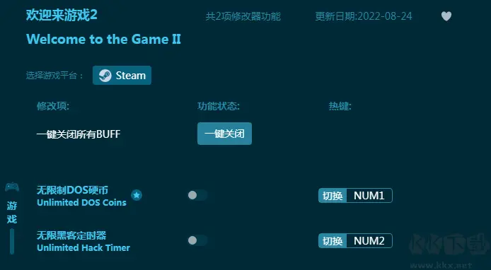 4、运行“欢迎来到游戏2”游戏,然后运行修改器,运行游戏后单击右侧的“添加BUFF”按钮激活修改器。