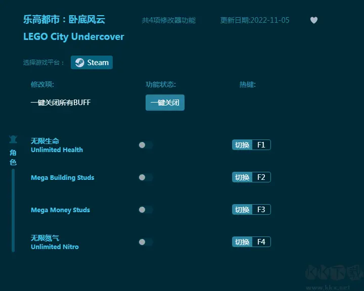 1、下载安装完成后,在搜索中输入“乐高城市:卧底”找到游戏修饰符; 2、使用修改器前,关闭电脑杀毒软件,关闭Windows安全中心3、运行“乐高城市:卧底”游戏; 4、运行游戏后,点击“添加BUFF”即可。 如果需要,也可以单独修改; 5、等待显示“BUFF加持成功”后生效。