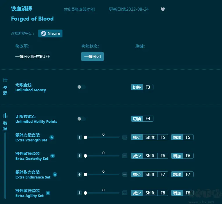 《铁血浇铸》是一款战术冒险类游戏,玩家将带领自己的队伍在道德黑暗的幻想世界中展开冒险。 KK下载站为大家准备了游戏辅助工具。 这个铁血铸造的8个修改器包含了无限生命、无限移动、无限金钱、无限技能点等功能。 有了这个修改器的帮助,玩家的小队战斗力可以大幅提高,轻松赢得战斗。 如果有需要的朋友的话就下载使用吧!