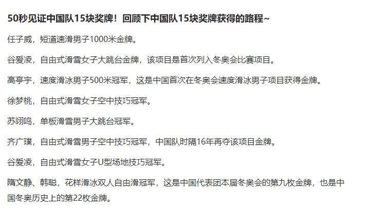 这一届冬奥会,中国队以9金4银2铜收官,位列金牌榜第三,金牌数和奖牌数均创历史新高。用50秒见证中国队15块奖牌,让我们再回顾下获得奖牌的路程。