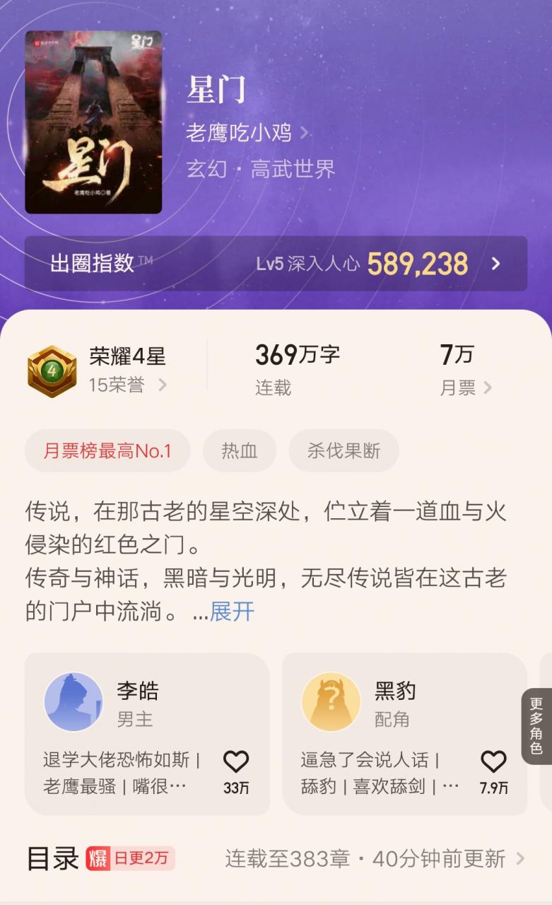 这部小说今年7月上线,到现在写了不到半年,字数却达到了370万。每天更新两万多字,触手怪当之无愧。我一路追着守望者。