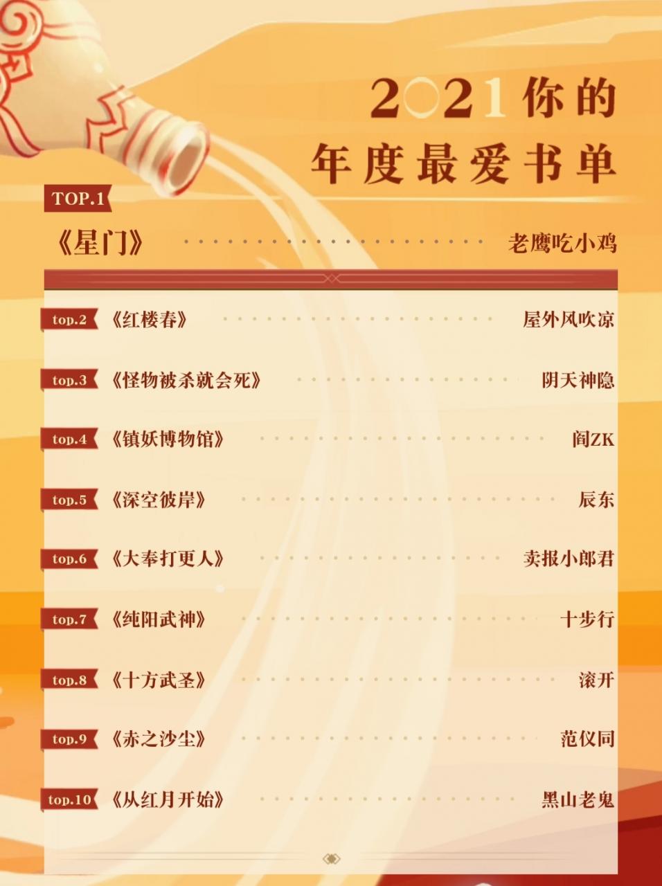 临近年底,各种官方年终总结陆续出炉。今天收到起点的读书报告。其中有我今年最喜欢的十部小说。看到榜单上的具体作品,我有些惊讶。