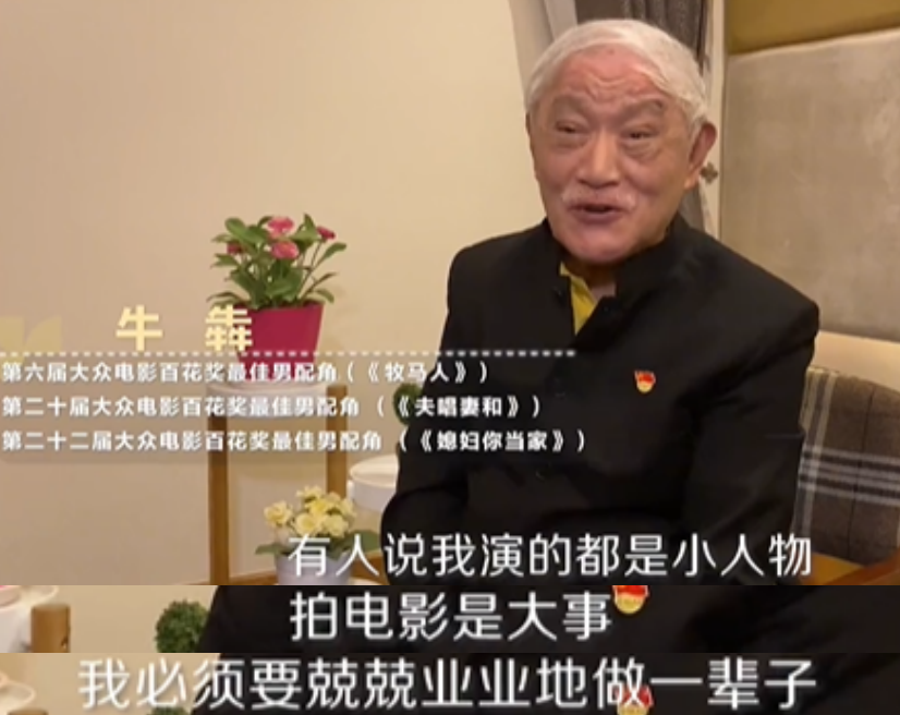 牛奔在采访中提出了一些自己演戏的想法,让人很佩服。虽然三次获得百花奖,但他是最佳男配角,观众总觉得他演的没人。但牛犇说,虽然他是个小人物,但拍电影是件大事。不管是什么样的角色,牛奔总是认真对待。他说他会努力工作一辈子。