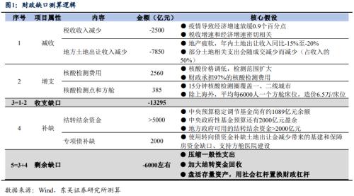 可以使用专项债额度部分补缺方舱医院建设以及土地出让金减少带来的缺口:2000亿元。土地出让收入支出中基建相关支出和保障性住房支出占比在12%左右,加上方舱医院的建设支出约2000亿元。2022年专项债额度较充裕,除了预算的3.65万亿外,下半年可能会提前下达的2023年额度,腾挪补缺的空间较大。