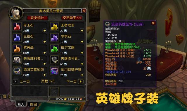 英雄的牌子换200级紫色装备,相当于英雄本王巍和10个NAXX正规BOSS的掉落。品牌兑换的主要成分包括项链、饰品和副武器。