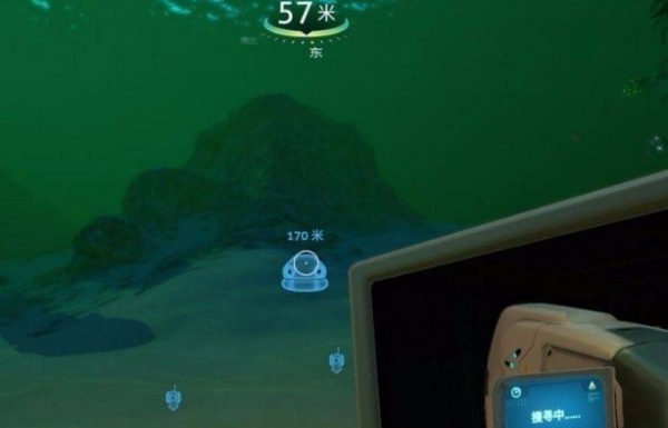 1、首先,开着水下推进器或者是开海蛾号前进,在如图所示的方位与距离,到这里集合。以起点救生舱为坐标,大概好像800多米的样子。