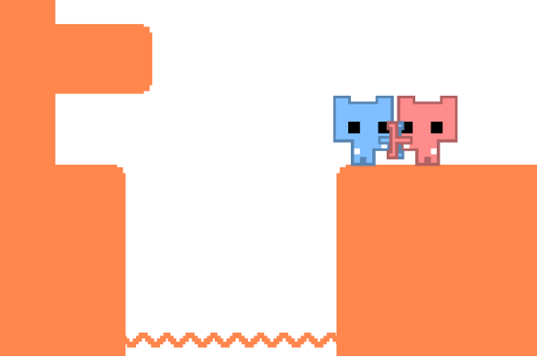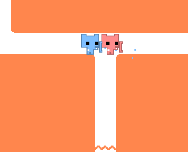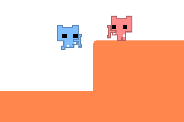 一个人上去后,后面就会出现一个方块,另一个人再踩着上去。