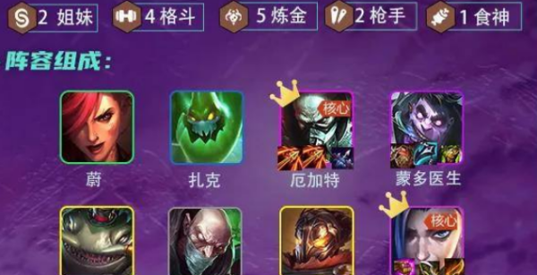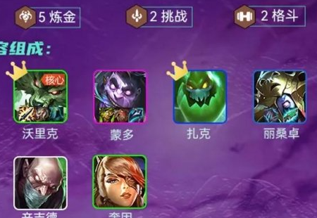 这个阵容的组成就是:老鼠、炼金、艾克、扎克、丽桑卓、蒙多、厄加特、维克托。